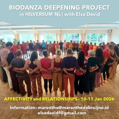Elsa David komt in januari weer naar Nederland voor haar 'Deepening Project: we dansen dit keer met het thema Affectiviteit & Relaties. Locatie: Hilversum.