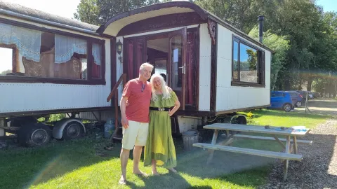€ 467,- p.p. slapen in een tweepersoons woonwagen/caravan in tweepersoonsbed