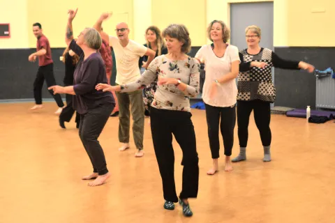 Zou je misschien met ons mee willen gaan op biodanzareis? Een wekelijks kort avontuurtje van anderhalf uur, waarbij je steeds wordt uitgenodigd om vanuit verschillende soorten muziek jezelf in beweging te laten zetten. Alleen, samen met iemand, met de hele groep. Elke muziek, elke dans, elke bewegingsoefening kan een nieuwe ervaring zijn. Een deur, een klein podiumpje voor jou alleen, een nieuw soort ontmoeting met iemand anders.